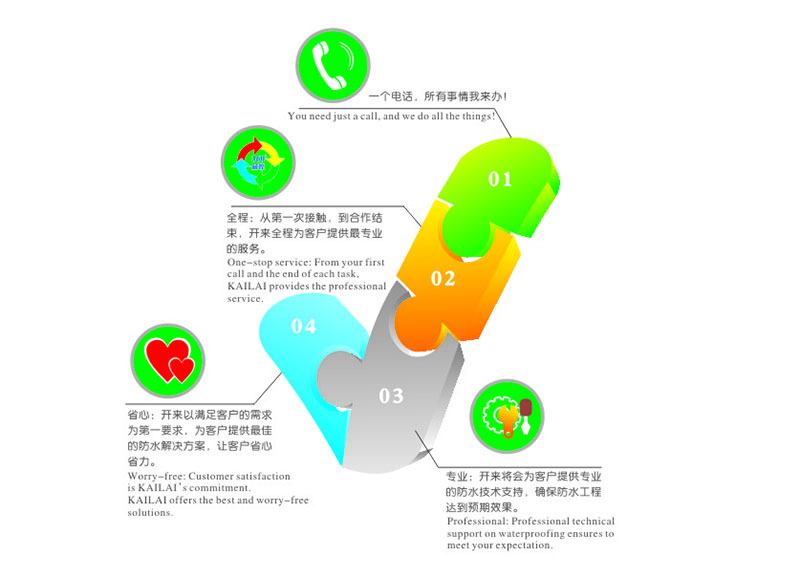 開來濕克威時刻鞭策自己在生產高品質產品的基礎上通過“產品+服務”為客戶提供系統的防水解決方案。