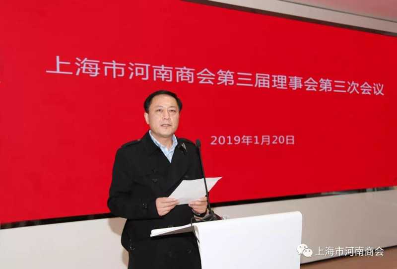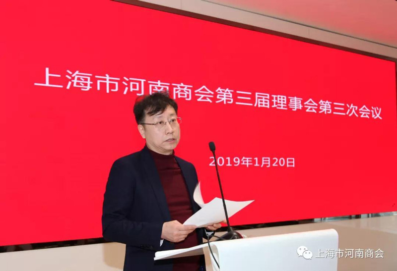 2019年1月20日下午,上海市河南商會第三屆理事會第三次會議在上海海銀金融中心會議室召開。參加會議的有商會理事成員,列席的有:部分團體會員單位、河南籍在滬物流行業、防水防腐行業、餐飲行業的代表約90人參加。
