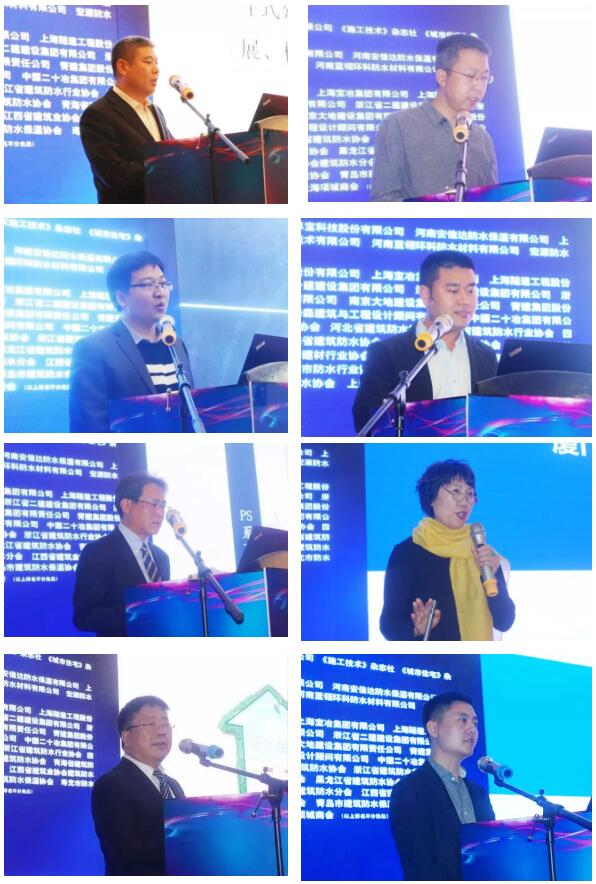 此外,會上還有8位專家作了報告:中國建筑第八工程局有限公司工程研究院副院長葛杰作《加強企業技術中心建設 助推企業技術創新能力》的報告;青建集團副總工程師王宇飛作《基于總承包管理的建筑工程防水問題分析》的報告;上海建工二建集團有限公司副總工程師、工程研究院副院長馬躍強博士作《裝配式混凝土剪力墻建筑防水節點策劃與控制難點》的報告;長垣市防腐協會副會長林振威作《防腐蝕施工與建筑防水》的報告;MASARU株式會社鐘化貿易(上海)有限公司密封膠施工總監本鄉雅也作《MS密封膠產品技術及市場應用介紹》的報告;深圳市卓寶科技股份有限公司技術總監李小溪作《廈門?叁仟棟防水工程經驗分享》的報告;上海開來濕克威防水科技有限公司總工程師伏新合介紹了ARMOR鎧甲防水系統;河南藍翎環科防水材料有限公司總工程師蘇懷武作《非固化密封膠在工程中的應用》的報告。