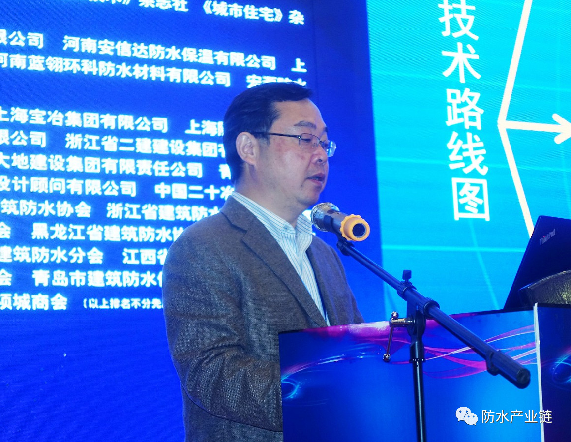 中國建筑業協會建筑防水分會副會長、專家委員會委員胡駿作了《地下工程防水與結構同壽命的技術路線》報告。