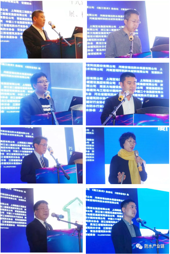 此外,會上還有8位專家作了報告:中國建筑第八工程局有限公司工程研究院副院長葛杰作《加強企業技術中心建設 助推企業技術創新能力》的報告;青建集團副總工程師王宇飛作《基于總承包管理的建筑工程防水問題分析》的報告;上海建工二建集團有限公司副總工程師、工程研究院副院長馬躍強博士作《裝配式混凝土剪力墻建筑防水節點策劃與控制難點》的報告;長垣市防腐協會副會長林振威作《防腐蝕施工與建筑防水》的報告;MASARU株式會社鐘化貿易(上海)有限公司密封膠施工總監本鄉雅也作《MS密封膠產品技術及市場應用介紹》的報告;深圳市卓寶科技股份有限公司技術總監李小溪作《廈門?叁仟棟防水工程經驗分享》的報告;上海開來濕克威防水科技有限公司總工程師伏新合介紹了ARMOR鎧甲防水系統;河南藍翎環科防水材料有限公司總工程師蘇懷武作《非固化密封膠在工程中的應用》的報告。