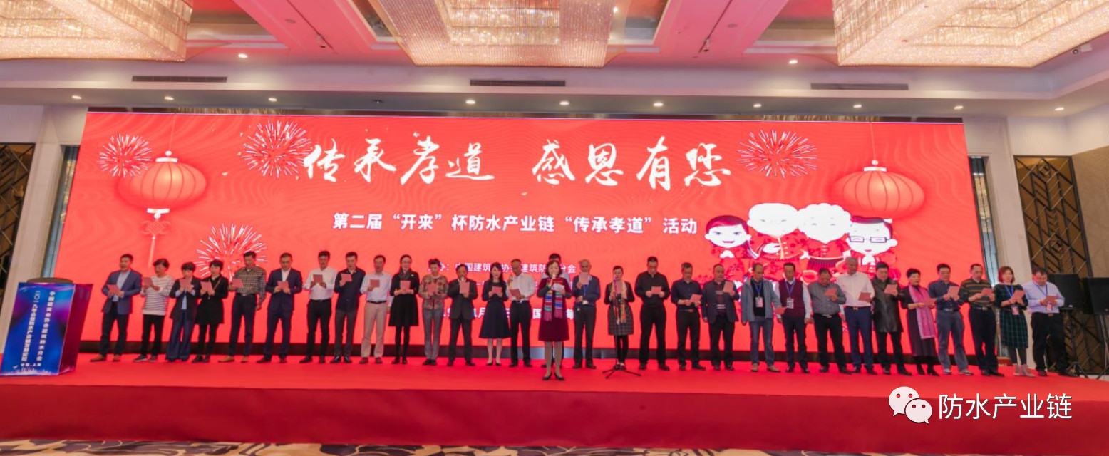 在湖北防水協會會長桂春芳帶下,30位會長、專家、產業鏈企業代表共同宣讀傳承孝道,感恩有您!第二屆“開來杯”傳承孝道,你我在行動倡議書!