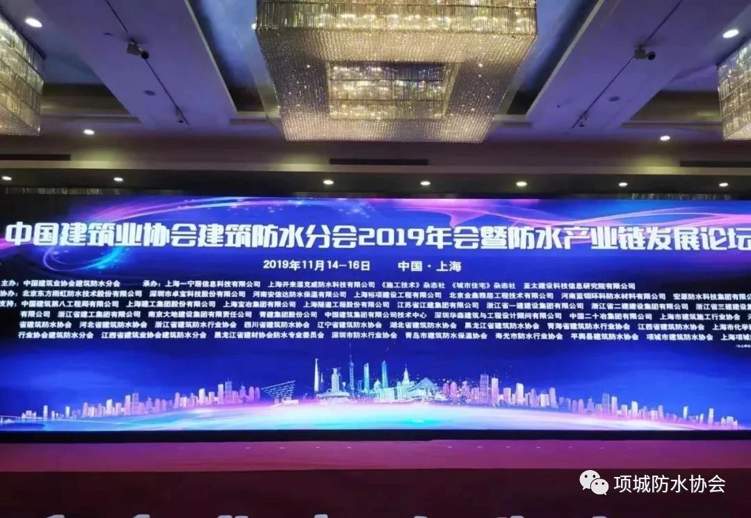 11月15日,中國建筑業協會建筑防水分會2019年會暨防水產業鏈發展論壇在上海召開。中國建筑業協會會長、原住建部總工程師、辦公廳主任王鐵宏,中國工程院院士肖緒文,中國建筑業協會副秘書長景萬,中國建筑業協會建筑防水分會會長熊衍仁、專家委員會名譽主任葉琳昌、專家委員會主任曲慧、常務副會長兼秘書長張可文等領導、專家及全國各地防水同行、地方防水社團組織領導、國內外專家學者共近300人出席會議。項城市政協副主席、防水協會會長王養嶺率領項城防水代表團參加此次大會。