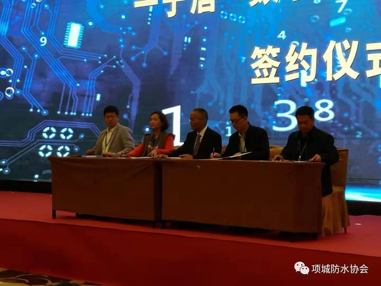 王養嶺會長(右二)在防水產業鏈平臺簽約儀式上簽字