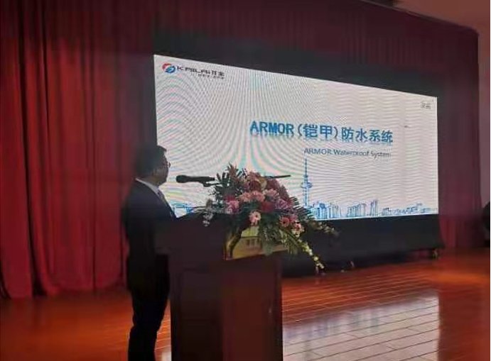上海開來濕克威防水總工、中國防水工大賽裁判、中國防水卷材類培訓師伏新合就我司推出的“ARMOR(鎧甲)百年防水系統(tǒng)”以及系統(tǒng)的研發(fā)及推廣應用情況做了詳細介紹,伏總通過國家政策及行業(yè)痛點的分析,闡述了打造百年防水系統(tǒng)的重要性,通過該系統(tǒng)的介紹,佐證了開來濕克威正在由材料銷售商向系統(tǒng)服務商轉變的發(fā)展方向,同時強調了ARMOR(鎧甲)百年系統(tǒng)對建筑防水起到的推動和維護作用。多年來,上海開來濕克威始終以呵護人類建筑安全為己任,呵護人類建筑安全。