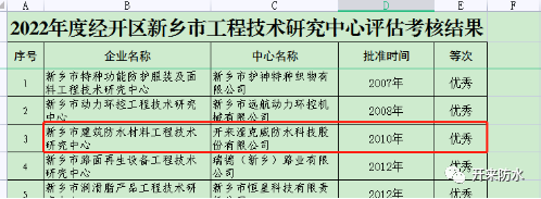 開(kāi)來(lái)濕克威防水科技股份有限公司榮獲新鄉(xiāng)市工程技術(shù)研究中心評(píng)估考核優(yōu)秀評(píng)定。