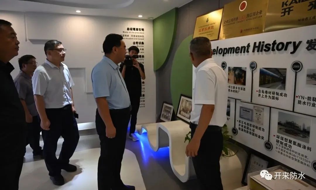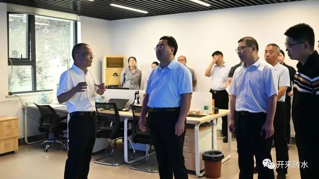 8月8日上午,新鄉(xiāng)縣委書記祝顯成帶隊到開來濕克威防水調(diào)研,縣委辦主任、開發(fā)區(qū)管委會主任王明輝,科工局局長王帥、農(nóng)業(yè)農(nóng)村局局長張罡、古固寨鎮(zhèn)黨委書記王宗源、鎮(zhèn)長張莉等一行陪同。