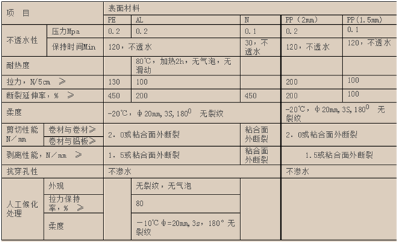 注:上表面材料為PP膜時(shí),執(zhí)行Q/ICJE16-2005標(biāo)準(zhǔn)